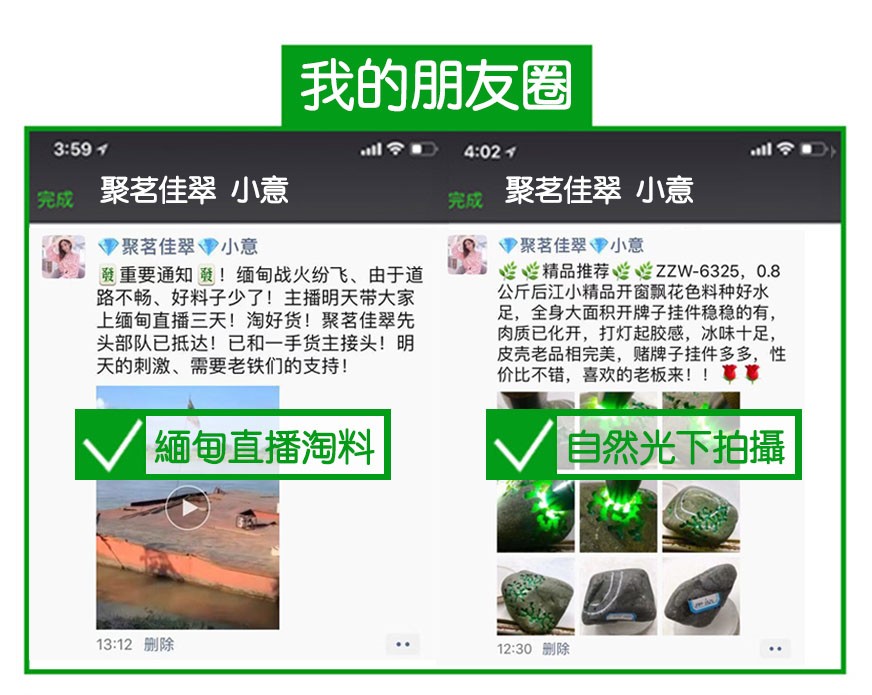 朋友圈很多微商都是市場上拍照轉發圖片,實際上手裏貨都沒有,也沒見到貨,這樣多次轉手翡翠不好價格還很貴,那要如何識別他們呢?